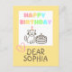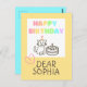 Colourful rainbow text and warm yellow&sky blue are harmonised.
