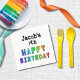 Add a cheerful touch to any birthday party with these rainbow Happy Birthday napkins! Featuring bold rainbow lettering with a black outline, they can be personalised with a name or message. Perfect for all ages and genders, these napkins are practical, festive, and ready for any celebration.