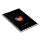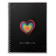 This colourful notebook features a vibrant rainbow heart design on a black background. It's perfect for taking notes, journalling, or doodling. The spiral binding makes it easy to open and close, and the high-quality paper is perfect for writing or drawing.