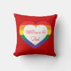 This pillow features a heart with a rainbow stripe design overlaid by a white heart containing a customisable text template. Show your true colours, support marriage equality, and celebrate gay pride.