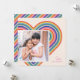A colourful rainbow heart creates the perfect frame on this whimsical and modern Valentine's Day photo card. A simple greeting in the corner completes the design. The back of the card features a coordinating pattern of red, pink, blue, yellow, and green stripes.