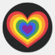 Colourful rainbow heart features concentric hearts starting with red, then orange, yellow, green, blue, and violet in the centre on a black background. Celebrate your LGBTQ pride, support, or love of rainbows with flair to decorate your gifts and gear.