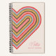 A colourful rainbow heart is the main focus of this spiral-bound notebook. There is space to customise the design in the lower right-hand corner. The back of the journal features a coordinating pattern of red, yellow, orange, pink, and green stripes. This design would be perfect for a young girl, perhaps as a birthday or Valentine's Day gift!
