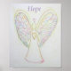 A white light guardian angel has wings folded to create a heart shaped outline. The feathers of the angel's wings also form heart shapes. There is a heart on the angel's chest and a heart hovering over the angel's head like a halo. Painting was rendered with watercolor pencil on paper. Personalise this art with your own text or images using the "Customise It" option. It makes for a great healing gift for a patient or a loved one/ caregiver support!