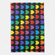 Abstract digital rows of rainbow coloured hearts against a black background. Colours including red, orange, yellow, green, blues, purple.
