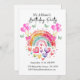 Make your little girl's party magical with this festive and colourful birthday invitation featuring a delightful rainbow, charming hearts, and captivating butterflies. This whimsical design will surely bring a smile to your daughter's face and set the tone for a fun and memorable celebration.