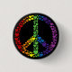 This design features small, medium and large hearts in rainbow colours arranged in the shape of a peace sign, on a black background.