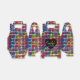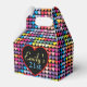 Multi coloured tiny heart pattern with black background which can be customised. Personalised with name and initial inside a red heart.