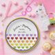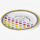 Add a colourful touch to your special day with these fun paper plates featuring a vintage inspired pattern of rainbow hearts with rainbow stripes accents and your own name and wedding or other details.