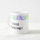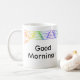 Whether you're sipping a latte, cappuccino, or any other hot beverage, this personalised mug with its geometric Rainbow Heat Wave Border will not only keep your drink warm but also serve as a beautiful piece of functional art that brightens up your day. Good Morning!