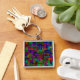 Rainbow Herringbone Brick Stained Glass Window Key Ring