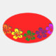 Rainbow hibiscus flower oval sticker