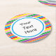 Rainbow Horizontal Stripes Custom Text Round Paper Coaster
