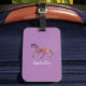 This elegant luggage tag showcases a stunning artistic depiction of a rainbow horse, formed by graceful waves of vibrant hues. The background is a soft, soothing lavender, creating a perfect canvas for the design. Personalise it with her name for a thoughtful, stylish touch. An exquisite gift for a travel-loving teenage girl, available exclusively from Lumirala.