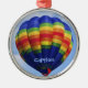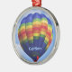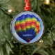 A bright and cheerful ornament with a picture of a rainbow-coloured hot air balloon, fully inflated. The red, orange, yellow, blue and green panels are all bulging under the pressure.
