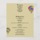 These flat two-sided wedding programs feature my painted illustrations of hot air balloons with realistic style depictions of balloons in bright rainbow colours.