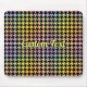 Rainbow houndstooth. Seamless pattern. Custom background colour. Custom text.