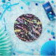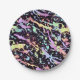 Retro 90s vibe of energetic graffiti splashes and a faux-holographic soft foil-y rainbow gradient.