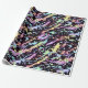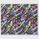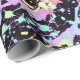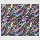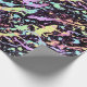 Retro 90s vibe of energetic graffiti splashes and a faux-holographic soft foil-y rainbow gradient.