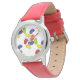 Watch features an original marker illustration of a handful of colourful rainbow jelly bean candies!