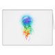 Large, iridescent, artistically drawn, bright jellyfish, with long tentacles on white, painted over with multicolored watercolor background. Rainbow jellyfish.