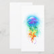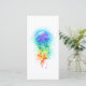 Large, iridescent, artistically drawn, bright jellyfish, with long tentacles on white, painted over with multicolored watercolor background. Rainbow jellyfish.