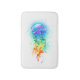Large, iridescent, artistically drawn, bright jellyfish, with long tentacles on white, painted over with multicolored watercolor background. Rainbow jellyfish.