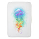 Large, iridescent, artistically drawn, bright jellyfish, with long tentacles on white, painted over with multicolored watercolor background. Rainbow jellyfish.