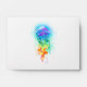 Large, iridescent, artistically drawn, bright jellyfish, with long tentacles on white, painted over with multicolored watercolor background. Rainbow jellyfish.