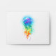 Large, iridescent, artistically drawn, bright jellyfish, with long tentacles on white, painted over with multicolored watercolor background. Rainbow jellyfish.