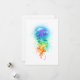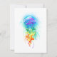 Large, iridescent, artistically drawn, bright jellyfish, with long tentacles on white, painted over with multicolored watercolor background. Rainbow jellyfish.