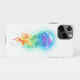 Large, iridescent, artistically drawn, bright jellyfish, with long tentacles on white, painted over with multicolored watercolor background. Rainbow jellyfish.