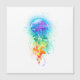Large, iridescent, artistically drawn, bright jellyfish, with long tentacles on white, painted over with multicolored watercolor background. Rainbow jellyfish.