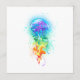 Large, iridescent, artistically drawn, bright jellyfish, with long tentacles on white, painted over with multicolored watercolor background. Rainbow jellyfish.