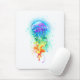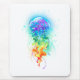 Large, iridescent, artistically drawn, bright jellyfish, with long tentacles on white, painted over with multicolored watercolor background. Rainbow jellyfish.