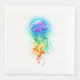 Large, iridescent, artistically drawn, bright jellyfish, with long tentacles on white, painted over with multicolored watercolor background. Rainbow jellyfish.