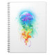 Large, iridescent, artistically drawn, bright jellyfish, with long tentacles on white, painted over with multicolored watercolor background. Rainbow jellyfish.