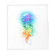 Large, iridescent, artistically drawn, bright jellyfish, with long tentacles on white, painted over with multicolored watercolor background. Rainbow jellyfish.