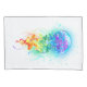 Large, iridescent, artistically drawn, bright jellyfish, with long tentacles on white, painted over with multicolored watercolor background. Rainbow jellyfish.