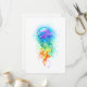 Large, iridescent, artistically drawn, bright jellyfish, with long tentacles on white, painted over with multicolored watercolor background. Rainbow jellyfish.