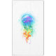 Large, iridescent, artistically drawn, bright jellyfish, with long tentacles on white, painted over with multicolored watercolor background. Rainbow jellyfish.