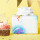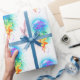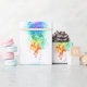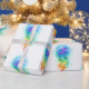 Large, iridescent, artistically drawn, bright jellyfish, with long tentacles on white, painted over with multicolored watercolor background. Rainbow jellyfish.