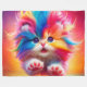 This fleece blanket has a rainbow kitten on it.