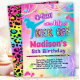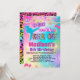 Leopard print martial arts party invitation in pretty rainbow colours for girls,