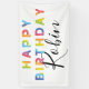 Say "Happy Birthday" in bold, colorful style with this personalized banner that reads "Happy Birthday" in rainbow colored lettering with your own choice of name below in modern style black script. With its clean and modern look this birthday banner is suitable for adults, but colorful enough for kids' birthday parties.
