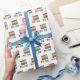 Gift wrap features an original marker illustration of a slice of rainbow layer cake topped with vanilla frosting, and PRIDE in a fun rainbow font.