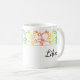 The surface of this mug is adorned with a vibrant rainbow Libra star sign pattern. The rainbow colours blend seamlessly into one another, creating a visually stunning display of hues that wrap around the circumference of the mug. The colours are vivid and eye-catching, evoking a sense of joy and positivity. Libra.