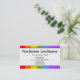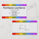 This business card design features rainbow-like patterns at the top and the bottom, with customisable details in between.