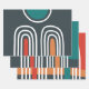 Blue, teal, terracotta red and white lines artwork. Boho rainbow abstract art.
