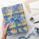 This eye-catching, fun, and vibrant birthday-themed wrapping paper design features a cloudy blue sky pattern background, a large number "10" and "HAPPY BIRTHDAY," both having a multicolored rainbow spectrum inspired gradient pattern, and a customisable name. Happy and colourful wrapping paper like this might be used when wrapping presents being given to somebody in celebration of their tenth birthday. [~Z0000372]